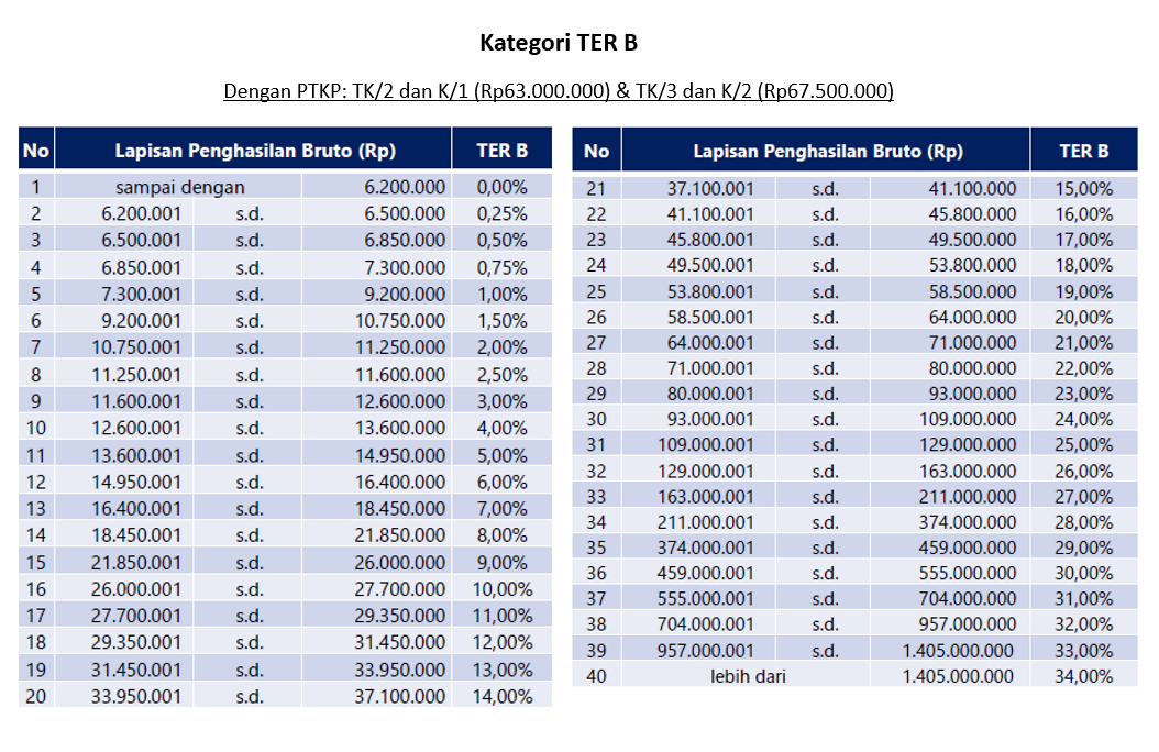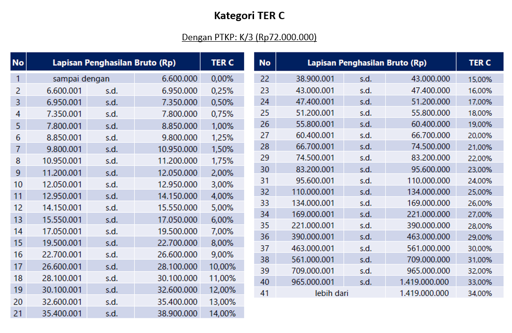 Skema TER dibagi menjadi 3 (tiga) kategori berdasarkan Penghasilan Tidak Kena Pajak (PTKP), yaitu: